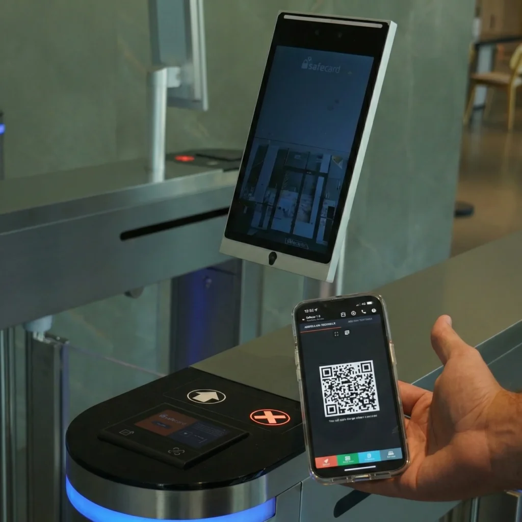 Nuestro sistema de control de acceso inteligente permite el ingreso de colaboradores mediante credenciales digitales, códigos QR, reconocimiento o autorizaciones desde la app.